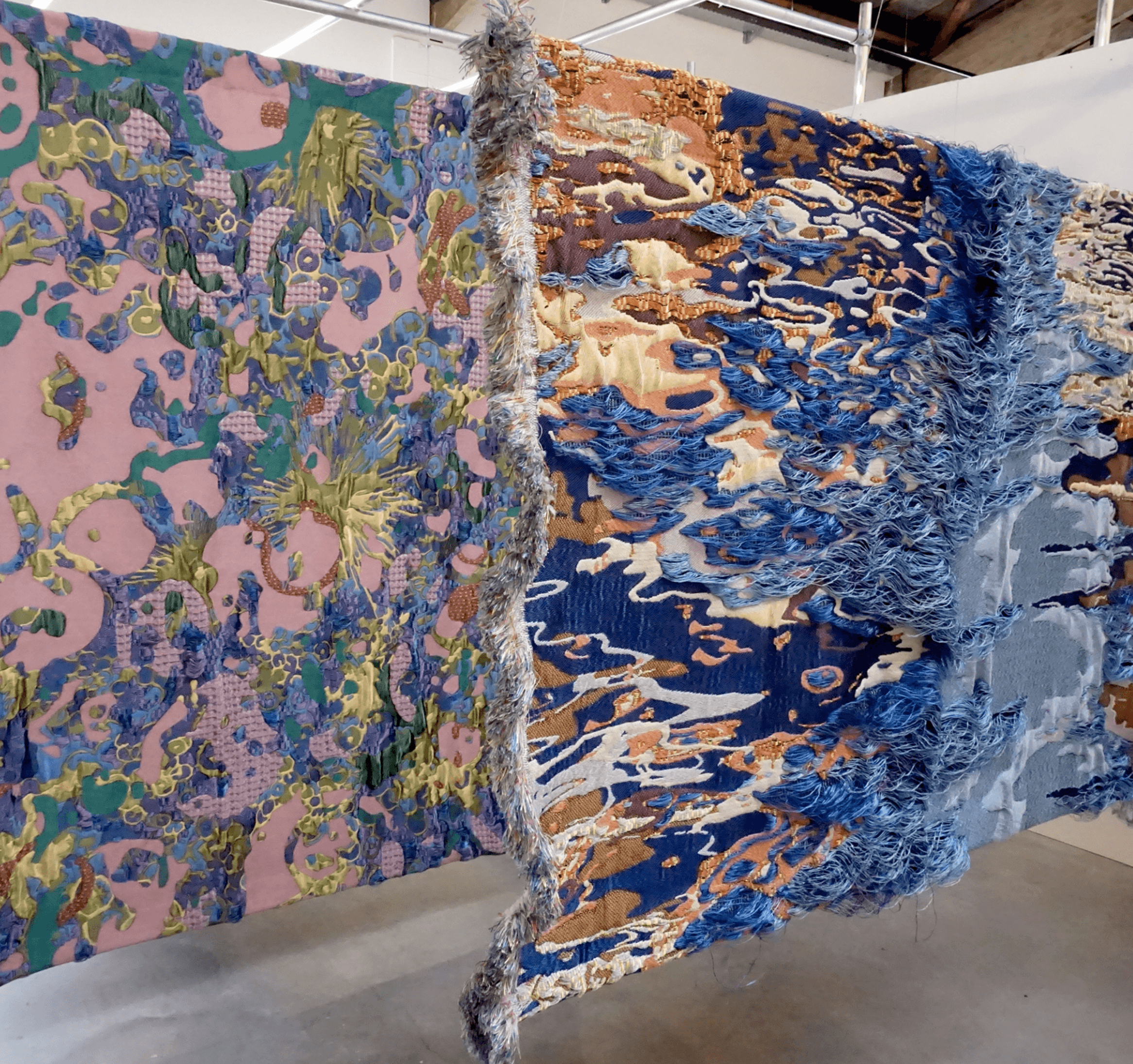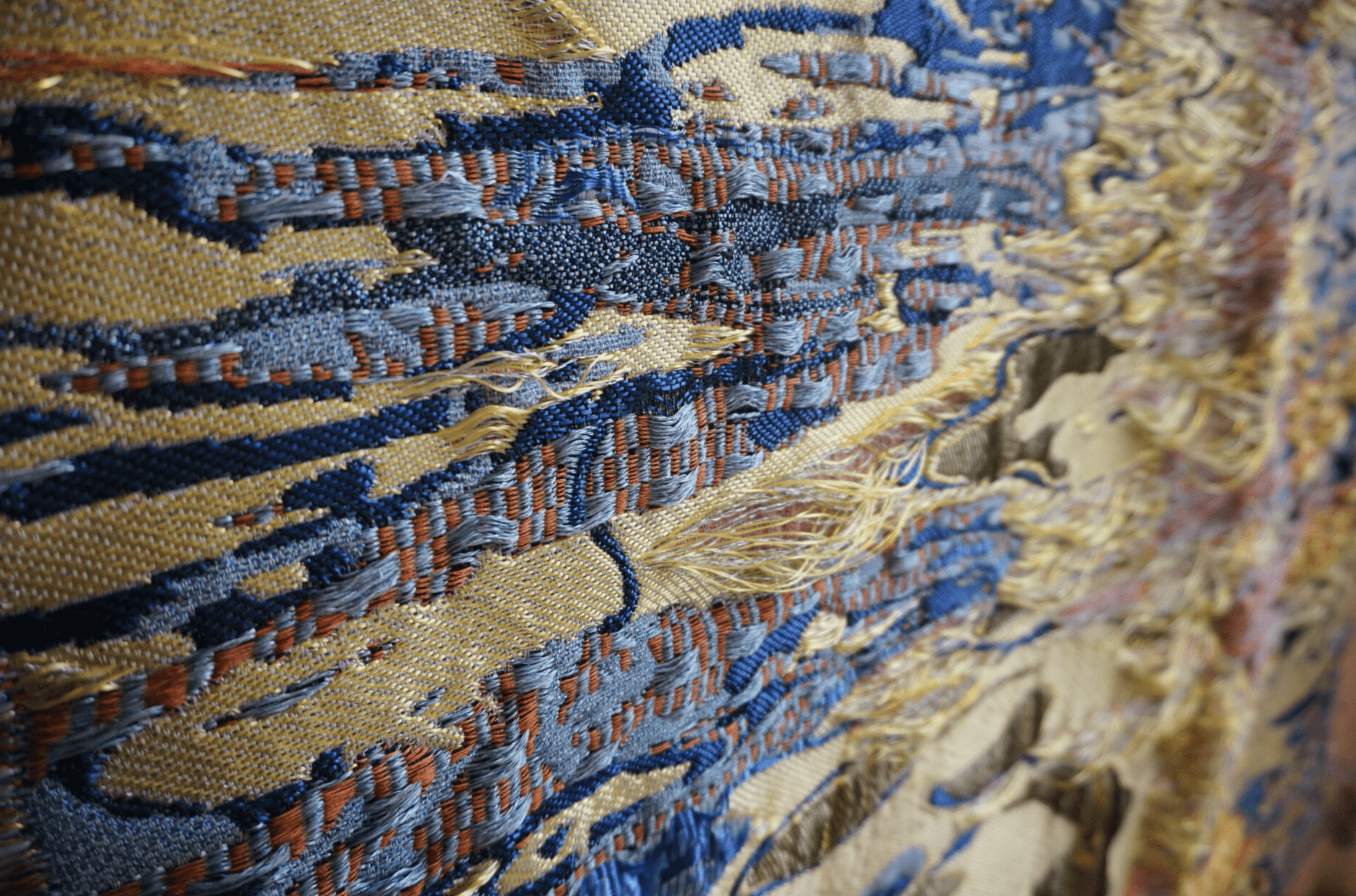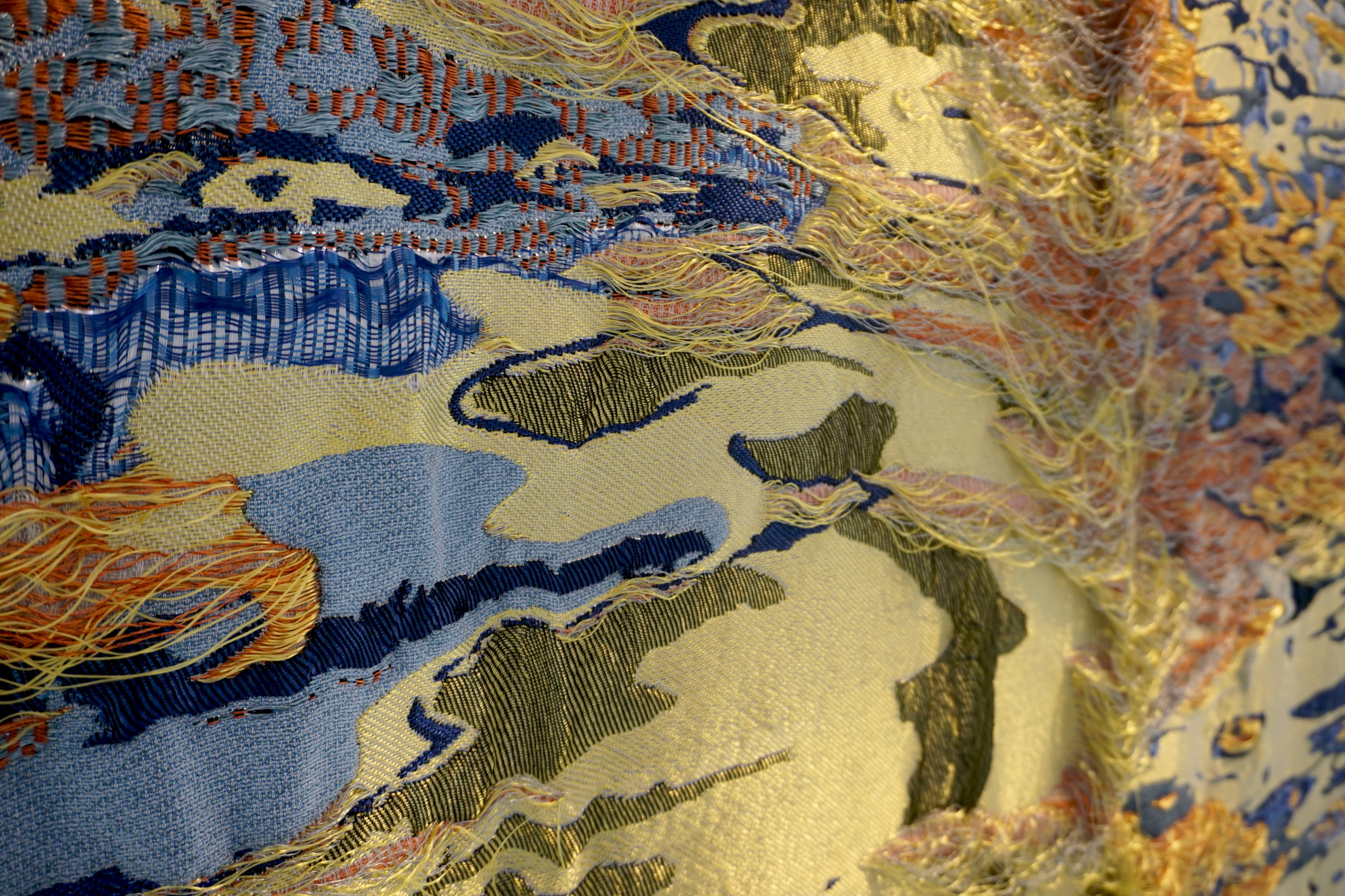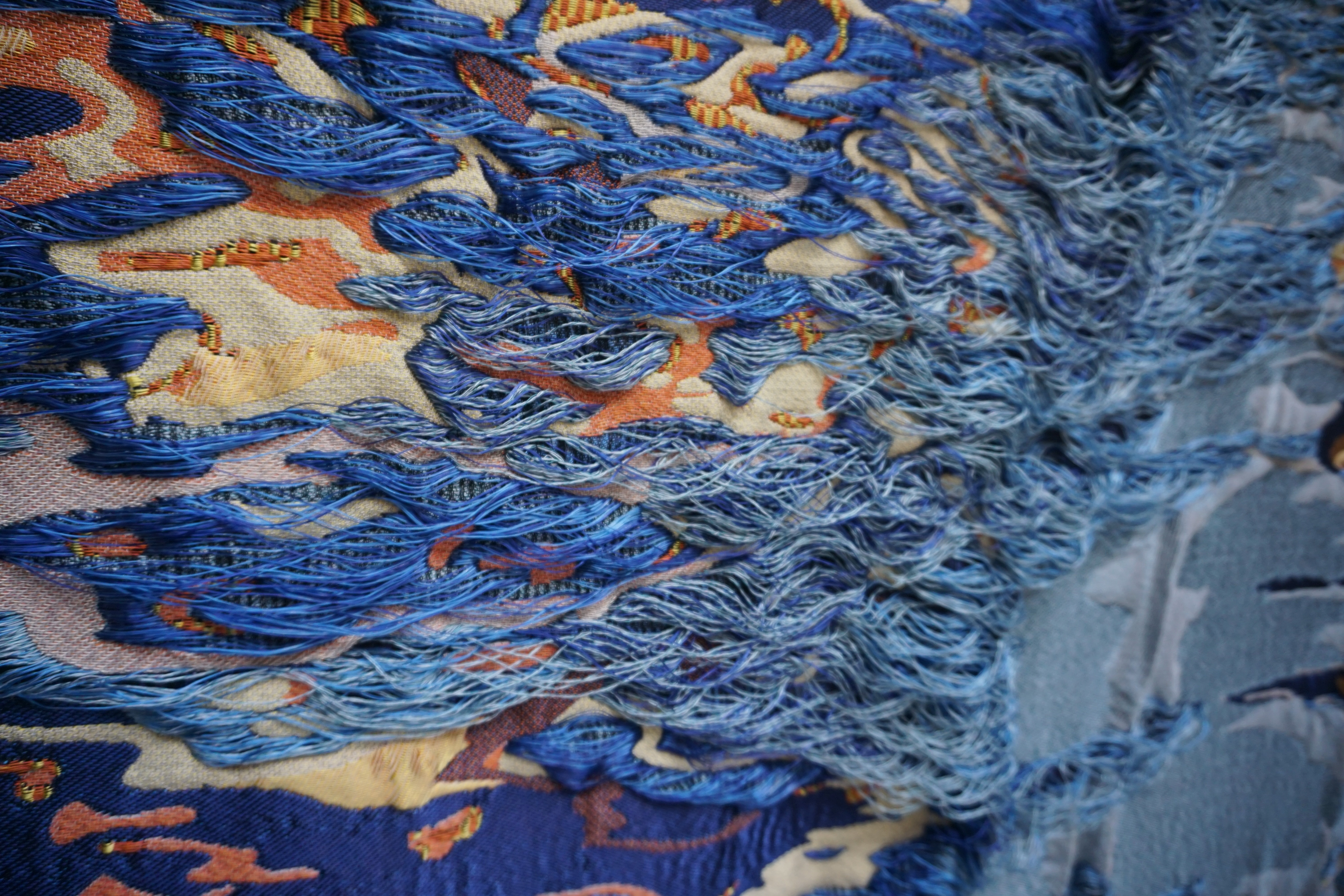 Evicted Nature Essence is inspired by weathered surfaces, disappearing ecosystems, and the quiet traces left behind by nature, Dwindled Scenery blends delicate weaves with bold structures, creating a tactile experience that invites the viewer to look closer. The interplay of colors and materials mirrors the tension between permanence and impermanence reminding us that even in decay, there is beauty, and in loss, there is renewal.