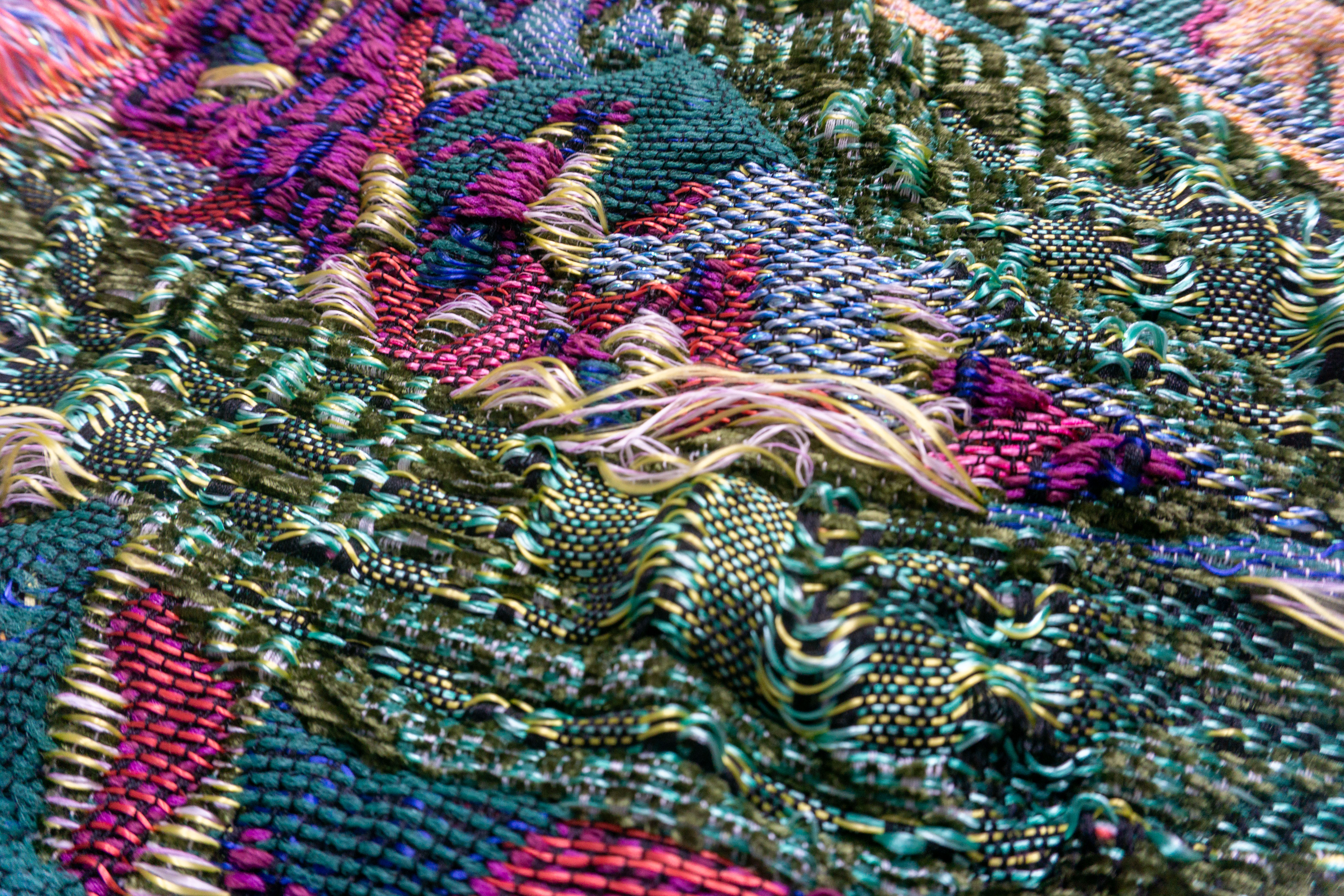 Evicted Nature Essence is inspired by weathered surfaces, disappearing ecosystems, and the quiet traces left behind by nature, Dwindled Scenery blends delicate weaves with bold structures, creating a tactile experience that invites the viewer to look closer. The interplay of colors and materials mirrors the tension between permanence and impermanence reminding us that even in decay, there is beauty, and in loss, there is renewal.