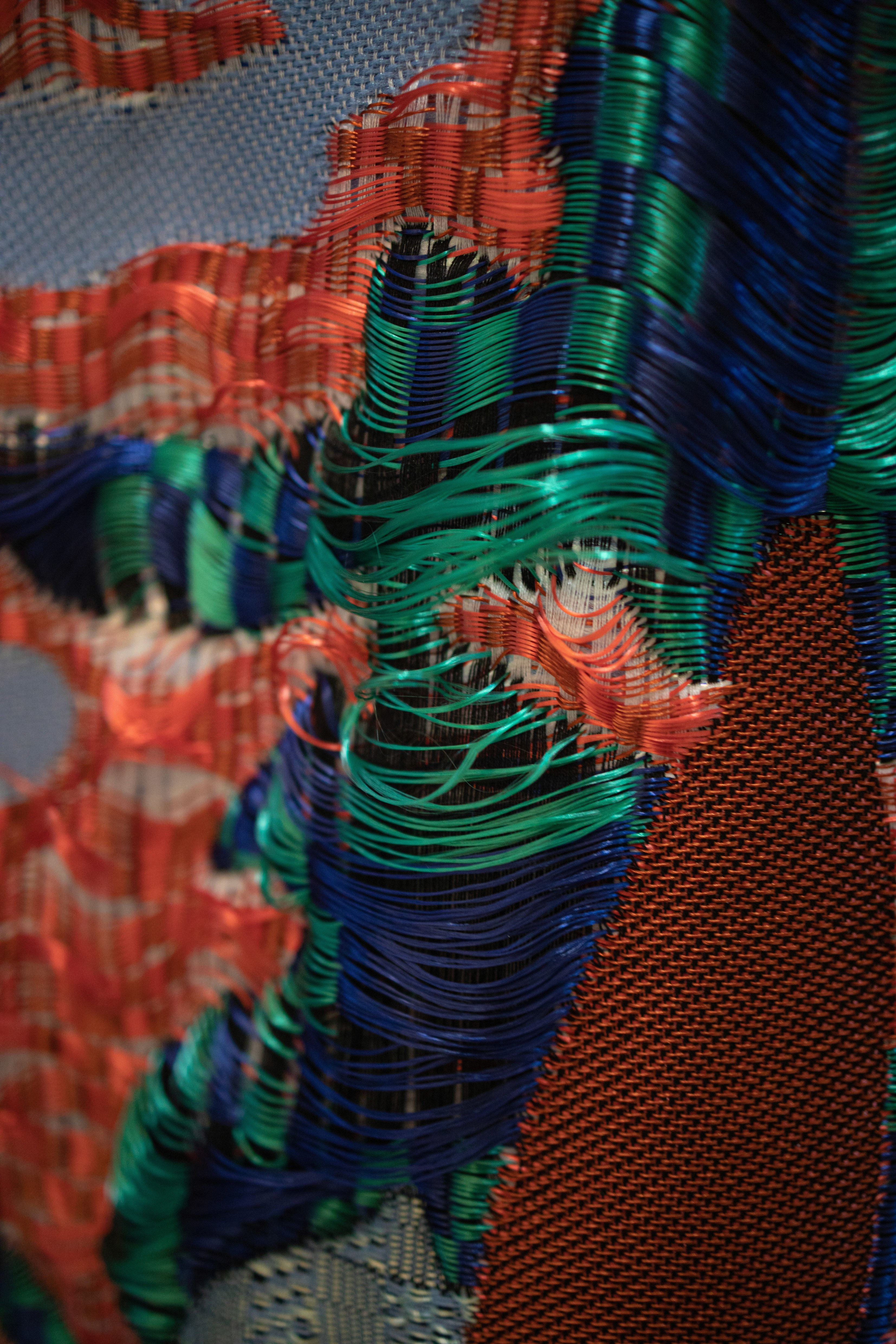 Sina Dyks presented immersive textile works, including wall hangings and sculptural pieces, highlighting her signature use of recycled and hand-spun fibers. Her installations created tactile, color-rich environments that engaged viewers in a dialogue between material, texture, and memory.